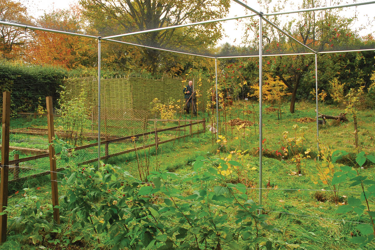 Working inside Classic Steel Fruit Cage, Red Hill Farm, Coventry